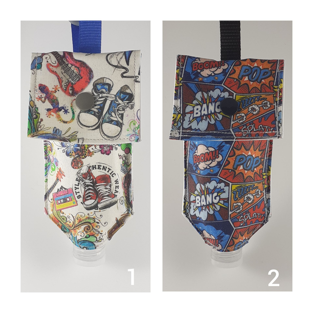 Pochette pour transporter flacon gel hydroalcoolique ( 50 mL / 60 mL/ 75 mL) toujours à portée de main.